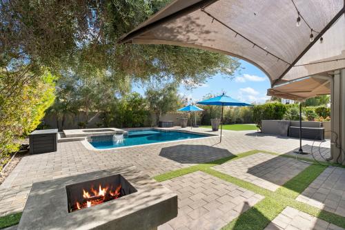 Corporate and executive relocation buyers will appreciate how this home combines familiar Midwest-style living with Arizona's resort lifestyle. A true finished basement—rare in Arizona—offers the kind of additional living space many buyers are accustomed to. Creating a private, flexible retreat ideal for extended stays, work-life balance, or hosting guests. The theatre room, guest suites, and kitchenette make the basement feel like a second residence within the home. Outdoors, the pool, spa, and pickleball sport court provide a refined yet relaxed setting to unwind or entertain. Located in a prime Tempe area with convenient freeway access, minutes to the Cardinals Training Facility, and close to BASIS Charter, this home makes relocation seamless without sacrificing comfort or lifestyle.