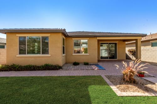 Step outside to a backyard designed for relaxation and enjoyment, featuring a paver patio and walkway, lawn, planter boxes, and a storage shed. Located in a desirable community with stunning views of the White Tank Mountains, close to schools and community parks. A must-see home!