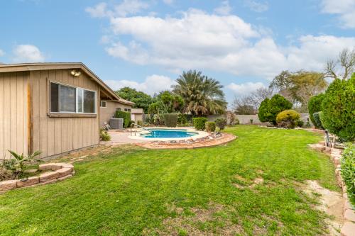 Step outside to your private backyard oasis with a refreshing pool, covered tile patio, pavers, expansive lawn, fruit trees, and a fenced side yard ideal for gardening. Storage and workspace abound with three sheds and two workshops, including a workshop equipped with electric and water.