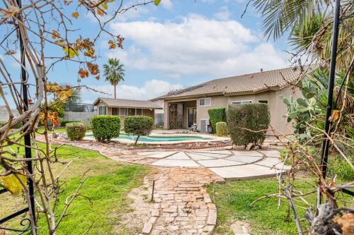 Beautiful Single-Level Home on a Premium Corner Lot with Pool! Situated on nearly a ΒΌ-acre lot, this well-maintained 3-bedroom home with a den offers exceptional indoor and outdoor living. Enjoy an excellent location near community parks, schools, and shopping. Inside, the home features high ceilings and ceiling fans throughout, a spacious great room with gas fireplace, crown molding, and upgraded baseboards. The kitchen showcases ample cabinet space, tile countertops and backsplash, complemented by wood laminate flooring and tile flooring in key areas. The large primary suite includes a bay window, double vanity, walk-in shower, and spacious walk-in closet.