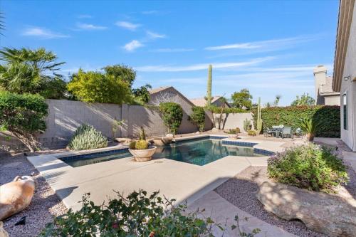 Enjoy Arizona living year-round with a sparkling PebbleTec pool, expansive covered patio, and plenty of room to lounge or host under the desert sky.