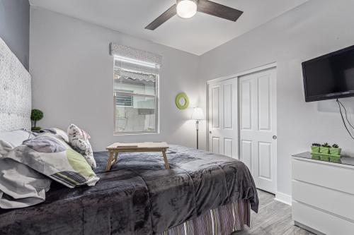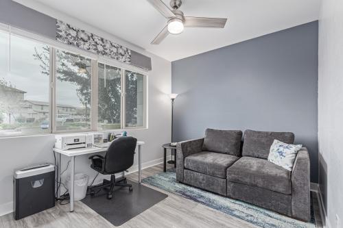 ceiling fans throughout, and multi-sliding doors for indoor-outdoor entertaining. The spotless kitchen with slystone countertop, stainless steel