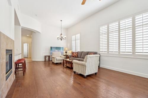 Perfectly located in the gated community of Cachet at Las Sendas with views of a beautifully landscaped open area, you'll love this lock and leave nicely upgraded 3 bed 2 bath 2 car garage single level split floorplan townhome. Exquisite upgrades include engineered wood flooring, 6 inch baseboards, shutters, high ceilings, abundant natural light and extra 6 inch insulation for added efficiency. The versatile great room can be used as a great room or living/dining room and is centered around a cozy fireplace. The kitchen showcases white cabinetry with green accents, slab granite countertops, beadboard finishes, and premium KitchenAid appliances, including a microwave/oven combo, convection oven, flat cooktop, new refrigerator, soft close doors, pullout drawers and a Jenn Air dishwasher. Both bathrooms have been updated with quartz countertops. A murphy bed will convey in the 3rd bedroom as well. The backyard features beautiful views as well as an extended stone paver patio, sun shade, and low maintenance landscaping. The exterior has been updated with a new roof as well. The community of Cachet at Las Sendas offers a heated pool and spa, workout room and clubhouse. Additionally, you will have access to all Las Sendas amenities including, parks, trails, tennis courts, pickleball courts, volleyball and basketball courts, splash pad, 2 additional pool and spa areas and more! Las Sendas backs to Tonto National Park and is just 15 min from the Salt River, Saguaro Lake, minutes from the 202 freeway, 25 min from Sky Harbor and downtown Scottsdale. Don't miss this amazing opportunity to own in Las Sendas!