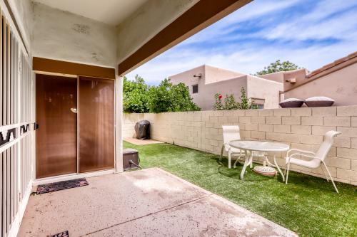 Welcome to resort-style living in the guard-gated 55+ community of Sun Village! This beautifully maintained 2-bedroom + den home features an open-concept floor plan designed for comfort and easy entertaining. The spacious primary suite offers a rare private exterior entrance to the covered patio and fenced backyard--perfect for enjoying Arizona's beautiful mornings and evenings. Sun Village offers an unmatched active lifestyle with an array of amenities, including a scenic golf course, sparkling pools, tennis and pickleball courts, lakes, and a vibrant social calendar filled with clubs, events, and activities.