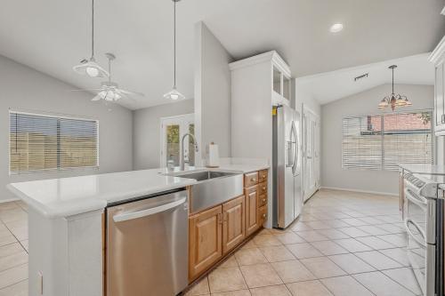 Welcome home to The Islands - Gilbert's most desirable lake community, where every day feels like a vacation! This beautiful 3-bedroom, 2-bath residence boasts a modern farmhouse-inspired kitchen with quartz countertops, stainless appliances, double oven, two-toned cabinets, and an oversized farm sink - ready for your next dinner party or cozy night in. Enjoy a spacious living room with a fireplace, two pantries for all your storage needs, and TWO dining areas - perfect for entertaining or relaxing. Step out back to low-maintenance turf yard, while the HOA keeps your front landscaping immaculate so you can soak in the effortless resort vibes. This home is just steps from the sparkling community pool, tranquil lakeside walking paths, lush parks, and all the amenities that make The Islands so highly sought after - including boating and fishing permits, playgrounds, and year-round social events. Don't miss your chance to live lake-adjacent in a friendly, picturesque neighborhood - schedule your tour and make The Islands your new home!