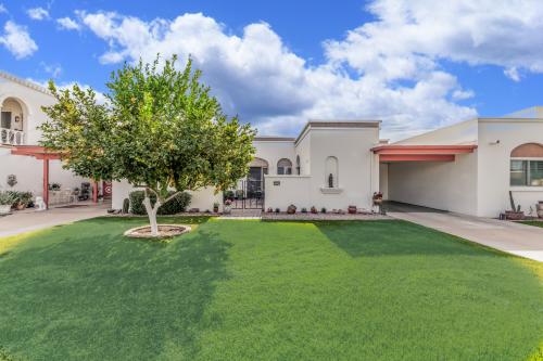 This beautifully updated 2-bedroom, 2-bath townhome offers 1,409 sq. ft. of thoughtfully designed living space, ideal for an active yet relaxed lifestyle. Well-maintained home shows pride of ownership with $65,000+ in improvements!! Remodeled kitchen, engineered hardwood flooring, custom tile, Corian countertops, refaced cabinetry, custom backsplash and upgraded appliances. Additional upgrades include a 2023 water heater with recirculation pump, replaced main sewer line house to street (2025), updated windows, remodeled primary bathroom w walk in shower, updated guest bath, screened AZ room, cobblestone courtyard and upgraded closet design. Large screened-in back patio and large cobblestone front courtyard with private gate. Eat-in kitchen, dining space and spacious living room provide comfortable spaces for both everyday living and entertaining guests. Living room with 3 panel glass doors opens to a private, peaceful backyard patio perfect for morning coffee or unwinding in the evenings.