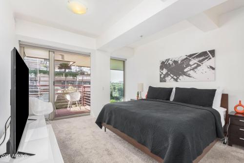 RARE CORNER UNIT WITH 2 PARKING SPACES, 2 BALCONIES AND BOTH COURTYARD AND MOUNTAIN VIEWS. Stunning home in Scottsdale. Walk to Fashion Square, Old Town, and Waterfront. Floor to ceiling windows to let in all the natural light your heart desires. Open concept kitchen is complete with granite countertops, premium stainless steel appliances and gas range. Master suite has plush carpet and a private exit to balcony to enjoy your morning coffee. Living room balcony has ample room for entertaining or lounging. Community amenities include 2 heated pools and spas, indoor pool, putting green, fully equipped gym, racquetball and basketball courts, party room, dog park and more!! Everything is at your fingertips, come see it today!