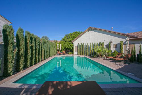 The backyard is truly a private resort escape — complete with a ramada, built-in BBQ, natural gas fireplace, cozy firepit and a hidden gem of an oversized pool with travertine coping. Whether hosting friends or enjoying a quiet Arizona evening, this outdoor space delivers.