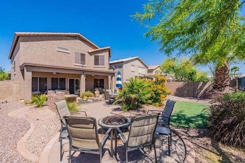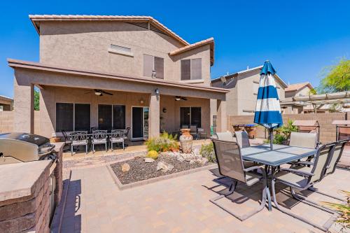 Beautiful move in ready 4BR/2.5 Bth home with loft. Home is situated on a beautiful green belt lot. Huge primary suite with large walk-in closet and spacious master bath. Three other bedrooms also nice sized. Open kitchen has oak cabinets, granite countertops, breakfast bar, and kitchen island. Enjoy the beautiful AZ sunsets in your beautifully landscaped backyard with pavers and built in BBQ. Exterior painted in 2024. Johnson Ranch has so much to offer with 3 heated pools, tennis and pickleball courts, pitch and putt golf course and catch and release fishing pond. Also home to San Tan Highlands golf course. (Formerly Golf Club Johnson Ranch)