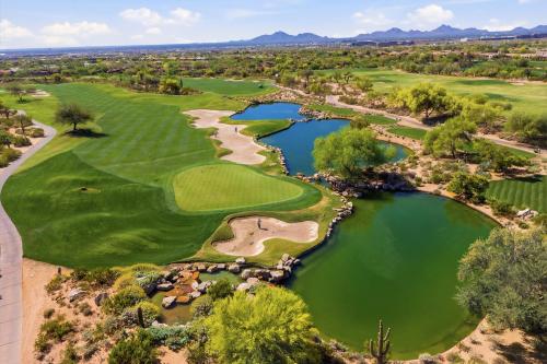 Nestled comfortably within the gated Encore community, this townhome is a showcase of views: enjoy the full expanse of the resort-style pool oasis from the private covered patio and primary suite, while guest rooms and dining area frame the majestic McDowell Mountains. The light-filled, open layout flows perfectly for entertaining or simple enjoyment of the leisurely vibe afforded by a fun and fresh interior and scenic beauty from every window. Easy walk to upscale boutiques at Market Street at DC Ranch or enjoy local favorites like Isabella's or MoJo's Coffee across the street. Perfectly suited as a primary residence, lock-and-leave, or high-end investment, this North Scottsdale home blends leisure and comfort with easy proximity to Loop 101, Mayo Clinic, and abundant outdoor activities.